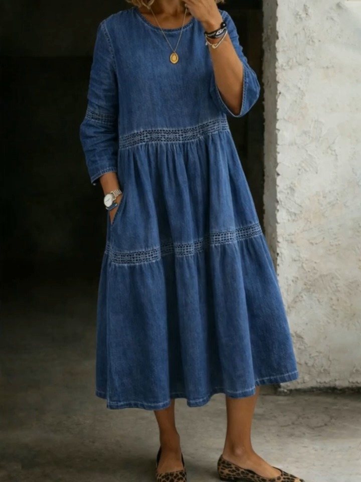 Women's Crew Neck Long-sleeved Casual Loose Denim Dress